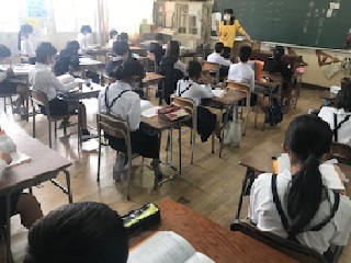 5時限目の1組の教室では、部屋割りを決めたり、持ち物の確認をしたりしていました。