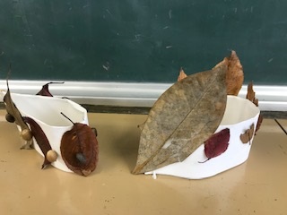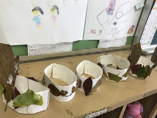 1年生は遠足等で集めてきた落ち葉を使って作品を作っていました!