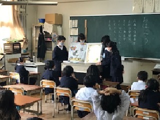 1年生と2年生の教室には図書委員が大型絵本の読み聞かせに行きました。