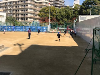 運動場が使える日には運動場へ。学年ごとの割り当てになっていますが、しっかり走って投げて乗って、と活動しています!
