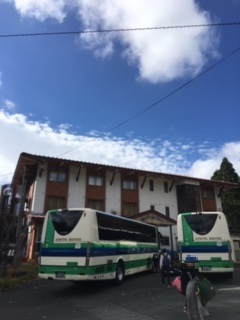 子どもたちを乗せたバスは、11:10頃、目的地「ハチ高原 ロッジみやま荘」に到着しました。ここまでとても順調に進んでいます。