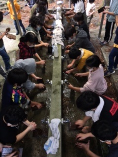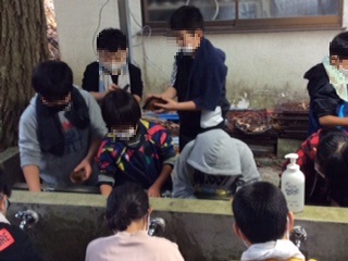 退所点検で合格をいただき、次の活動「焼き板みがき」のスタートです。