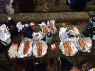 おいしく焼きあがったようです。これからバスに乗る子どもたちにはちょうどよい昼食になったと思います。