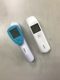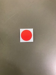 検温してからご来校ください。万が一、検温を忘れた方は受付横で検温します。検温後、受付横で赤いシール(下の画像参照)を入校証ホルダーに貼ってください。兄弟関係で再受付されるときもシール貼付=検温確認済とします。