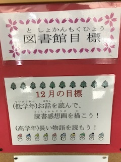 12月は、低学年が「お話を読んで、読書感想画をかこう」、高学年が「長い物語を読もう」となっています。