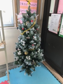 そう、クリスマスツリーです。図書館の入り口を華やかに彩ってくれています。