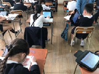 4年生が国語の時間にタブレット端末を使って調べ学習をしていました。