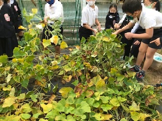 2年生が学習園で育ててきた、さつまいももいよいよ収穫の時期となりました。