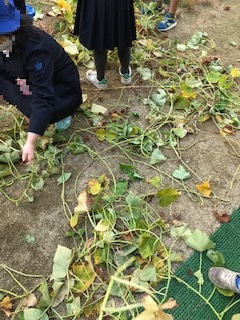 まずは、いものつるを抜きました。抜いたつるはこの後あるものを作るために使います。12月にちなんだあるものです。また、ホームページでご紹介できればと思います。