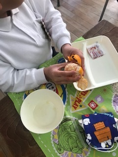 12月15日の給食は「コッペパン・牛乳・鶏肉とじゃがいものスープ煮・きのこのドリア・みかん・いちごジャム」でした。