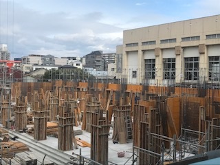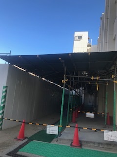 クレーン車に関係する事故が万が一起きたとしても、子どもたちに危険が及ばないように、給食室前の廊下に、屋根を付けてもらいました。廊下は暗くなりましたが、安全のためですので、気を付けて通るように指導していきます。