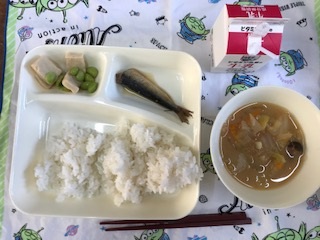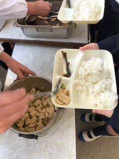 子どもたちの中には、いわしの骨を器用にとって食べる子もいました。もう一つのおかずに登場の高野豆腐とともに栄養価が高いいわしです。食べられるなら骨も食べて元気いっぱいになりましょう!