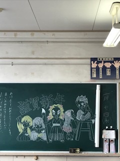 ここ数年来、始業式や終業式等では、担任の先生作の素敵な黒板アートが子どもたちを迎えます!