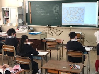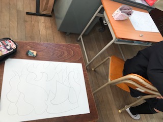 4年生は初めて彫刻刀を使って版を彫ります。そのための下絵を描き上げます。