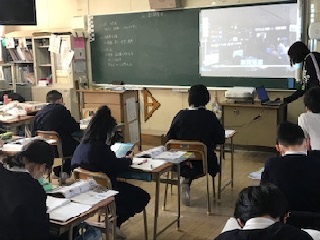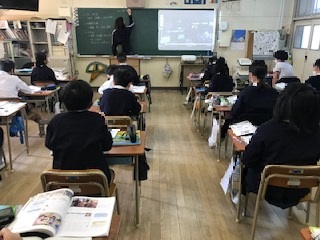 5年2組の教室をのぞくと、社会科の学習中。映像をみながらの授業でした。