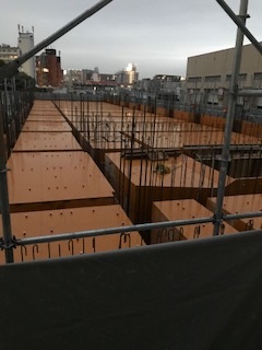 新校舎は講堂2階のギャラリーから見ると軽く2階の高さを超えています。また、3階から見ると、目の高さまできています。