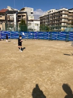 工事の関係で運動場が狭くなっている中で、混雑を避けるため、各クラスを半分ずつに分けて4グループで行いました。思ったよりも高くあがった子もいました。