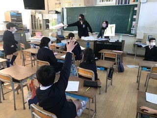 2月は中本小学校の創立記念日(22日)があります。18日の児童集会時に創立記念を祝う会を行う予定ですので、そのための役割分担を決めて、練習していました。