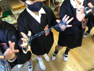 1年生の教室では休み時間にあやとりを楽しんでいました。難しそうなものも器用に素早く作っていました。嬉しそうに見せてくれました!