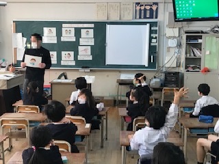 イラストを見ながら、「これはどうしてダメなのか」「どうすればよいか」子どもたちに投げかけていきます。子どもたちは積極的に手を挙げて、自分の考えを発表していました。とても盛り上がっていました。