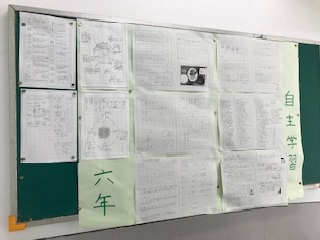 自主学習に取り組んでいます。今回は6年生のノートを掲示しています。
