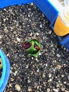 2年生のヒヤシンス、教室の花に負けず、子どもたちの鉢植えも開花を待ち望んでいるように育っています。