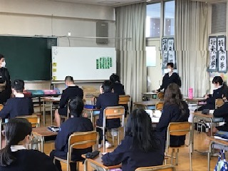 1時間目、6年生はそわそわした様子で待っていました。教室に入り、自己紹介のスタートです。