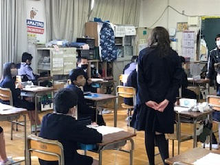 1月末から日本語や日本の文化等について学びに他校へ通い、本日最初の中本小学校への登校となりました。