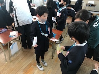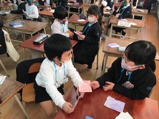 1年生は楽しそうに活動していました。大切なことは、英語を使ってみること、コミュニケーションをはかることだと思います。繰り返すことで覚えていき、積極的に活用していけると考え、取り組んでいます。