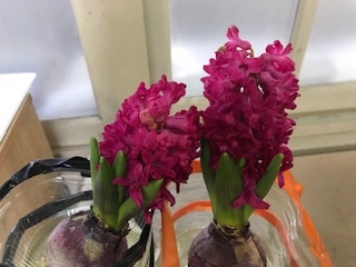 2年1組に続き、2組の教室で育てているヒヤシンスも開花しました!