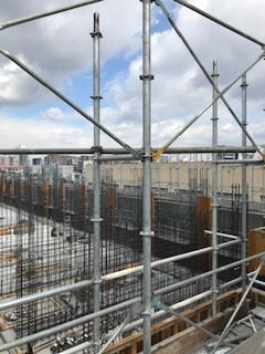 新校舎建築工事の足場が、4階の高さまで来ました。この高さでの作業、大変ですが、みなさん一生懸命に取り組んでくださっています!