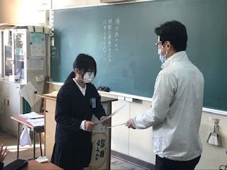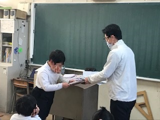 表彰は、昨年度に学校から出した絵画展のものです。紹介の後、教室にて校長先生から賞状の授与がありました。