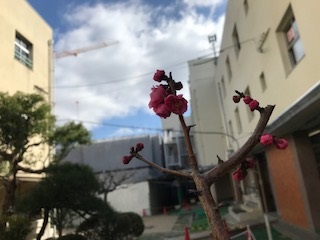 3月3日はひな祭り。桃の節句とも言いますが、本校の中庭では、梅の花が開花しています。かわいらしいピンクの花が咲き始めました。