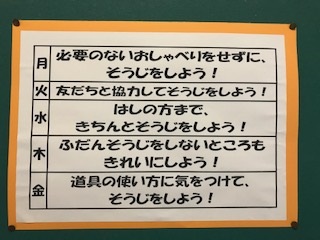 月曜日は「必要のないおしゃべりをせずにそうじをしよう!」です。
