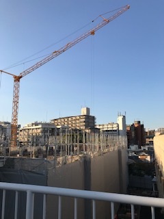 新校舎建築工事は4階の高さまで進んでいます。この高さで作業をしてくださっている方々がたくさんいます。ありがとうございます。