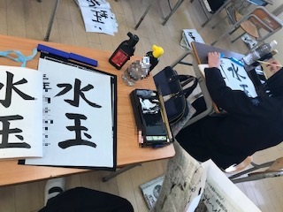 年度当初に比べてずいぶん筆の使い方が上手になってきました。まだ小筆で名前を書くのが難しく、何回もやり直している子もいました。繰り返し納得いくまで取り組めることは素晴らしいですね。