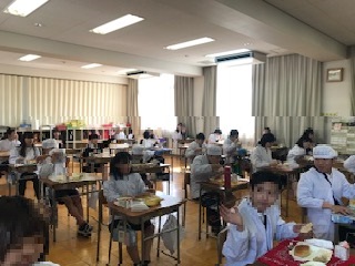 この日のメニューは6年生の卒業を祝うための特別献立でした。メニュー数も多く、嬉しそうでした。