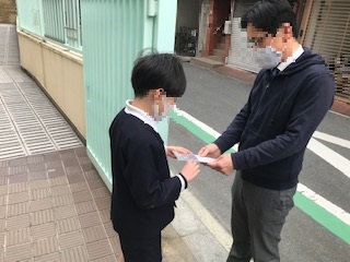 難しい作業もあり大変だったのですが、手紙もつけて各教職員に手渡ししてくれました。もらった教職員は笑顔で「ありがとう」と伝え、作り方等を聞いていました。