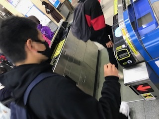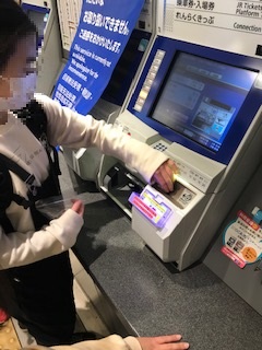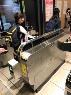 JR森ノ宮駅まで行き、切符リーダーがお金を受け取り、グループの切符を購入します。一人一人が改札機を通って、いざ電車へ。