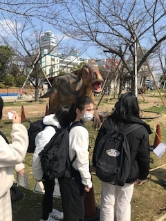 卒業遠足「記念写真〜恐竜クイズ」(6年生:3月10日)