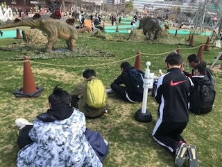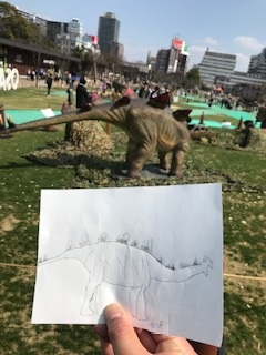 恐竜クイズラリーが早く終わったので、男の子たちに「恐竜の絵を描いてみたらどう?」と声をかけてみると、「ホームページに載る?」との返しが!