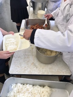 この日の給食には「チリソース」で味付けされた鶏肉が出ました。