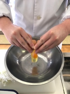 たまごを割るのにドキドキしている子がいれば、躊躇せずに割る子もいました。割ったたまごをボウルの中でかき混ぜて準備する子や目玉焼きにするため、直接フライパンの上で割る子もいました。