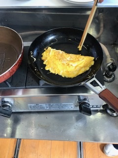 たまご以外に具材を使う子は、事前に持ってきておいて、保管していました。一人一人袋に名前を書き、間違えないように、他の人の食材にふれないように注意しています。