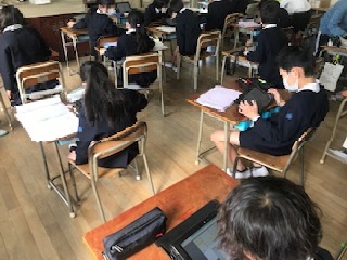 新聞は、タブレット端末内の協働学習アプリであるコラボノートを使っています。