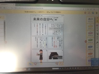 4年生は10歳の節目を迎えるにあたって、未来の自分がどうありたいのか考え、タブレット端末を使って調べたものを記事にしています。
