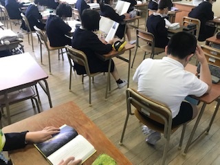 しっかり集中して読書に励む子どもたち。読書は心を豊かにし、多くの言葉を知り、学ぶことができます。