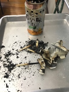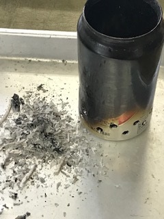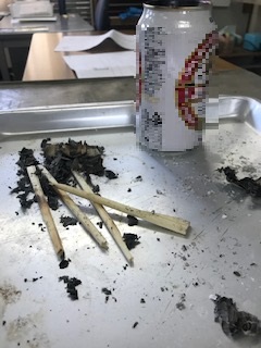 空き缶に新聞紙と割り箸を入れ、燃焼の様子を確認しました。