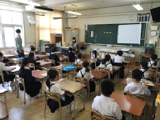 校長先生から、「いじめについて考える日」であることが伝えられました。中本小学校はいじめをしない学校、いじめを許さない学校であること、友だちを大切に思うメッセージが教室に掲示されていること、よい関係づくりを進め、きずなを深められるよう、一緒に励ましあおうと伝えられました。子どもたちは真剣に話を聞いていました。