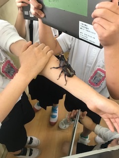 2年生は現在カブトムシを飼育しています。そのカブトムシを学習者用端末で撮影し、自宅学習で記録シートに書いていきます。端末を持ち帰ることで、カブトムシの様子などもわかりますね!どのような発見があったのでしょう!!